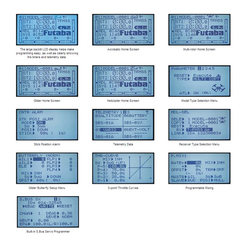 Also the first to have multi-rotor helicopter programming. It's perfect for a whole host of applications: Airplane, helicopter, glider and multi-rotor menus are all included. Futaba delivers the very best radios and the 10J is no exception !