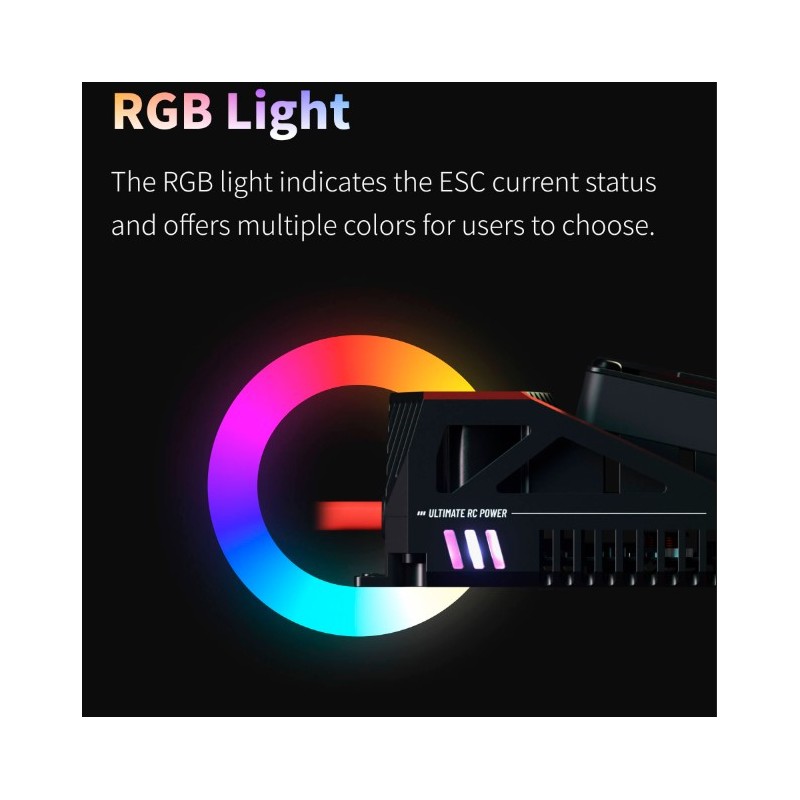 10. Equipped with colorful LED lights including five optional colors for users: red, green, blue, yellow, and white, which indicate the ESC status through flashing modes.